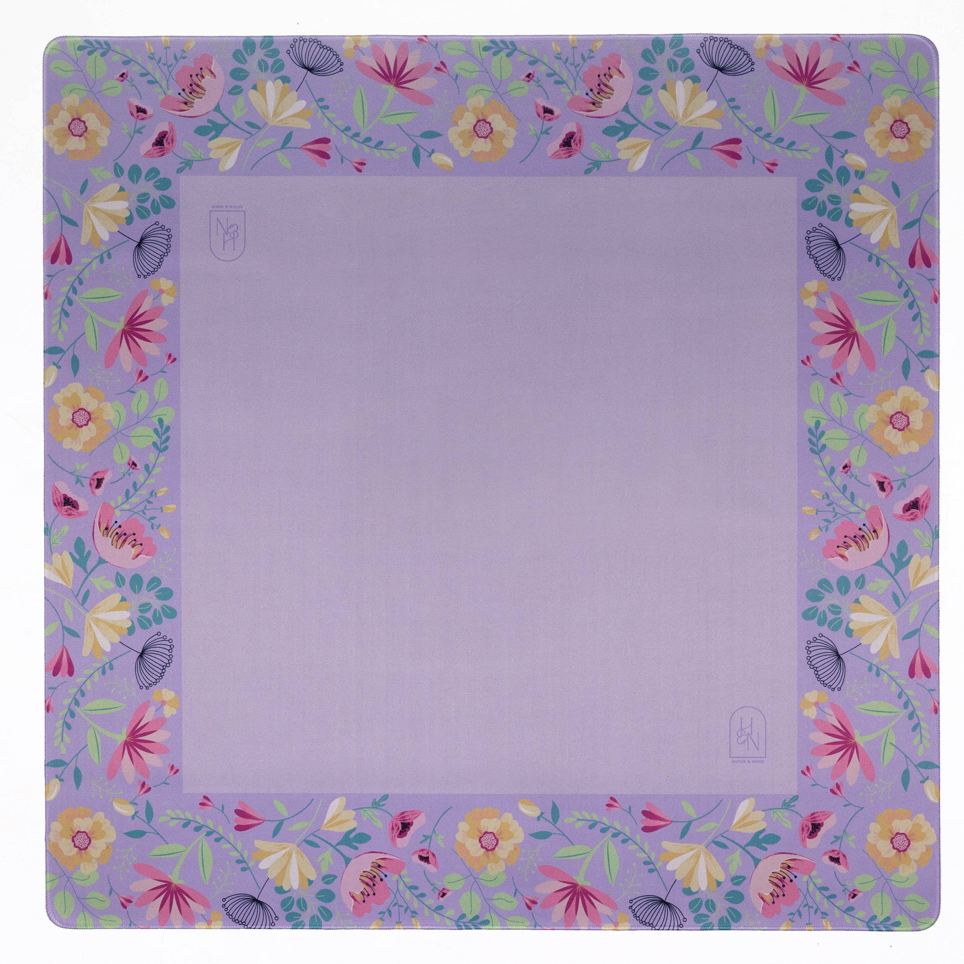 Our beautifully designed mahjong table mat features a non-slip neoprene backing. The design side showcases a silk-like material making it easy to slide cards and mahjong tiles across the table with ease. The mat is 33 in. X 33 in. (2mm thick) making this the perfect table accessory whether you're playing at home with friends or traveling. It fits most standard sized card tables. A great mat for a variety of games, including dominoes, Mexican train, bridge, Bunco, and more. We recommend rolling the game mat after playing for storing. Each mat comes with a custom box that can be used for storing when not using. It is the perfect way to elevate your favorite game.