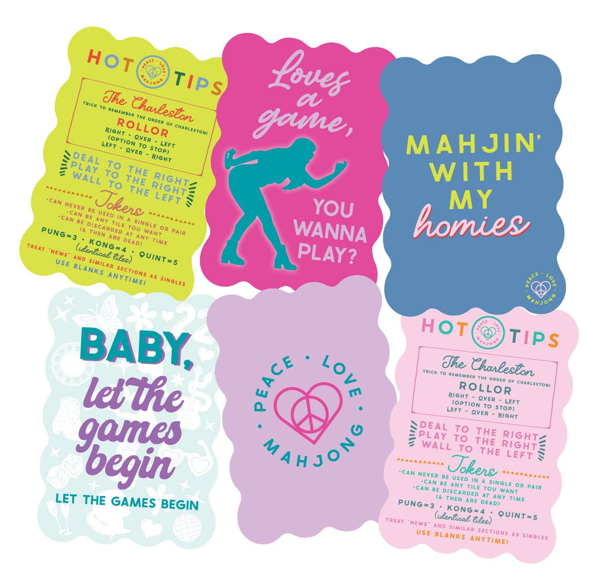 Scalloped Mahjong Shufflers - Printed on Front & Back - Set of 2